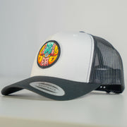 At the center of this classic black and white Yupoong Trucker Hat is a 2.25” embroidered patch showcasing Millward’s intricate design, inspired by the psychedelic energy and free-spirited vibe of those historic Capitol Theatre performances. The patch adds a bold pop of color and texture, making this hat a standout piece for any Deadhead’s collection.